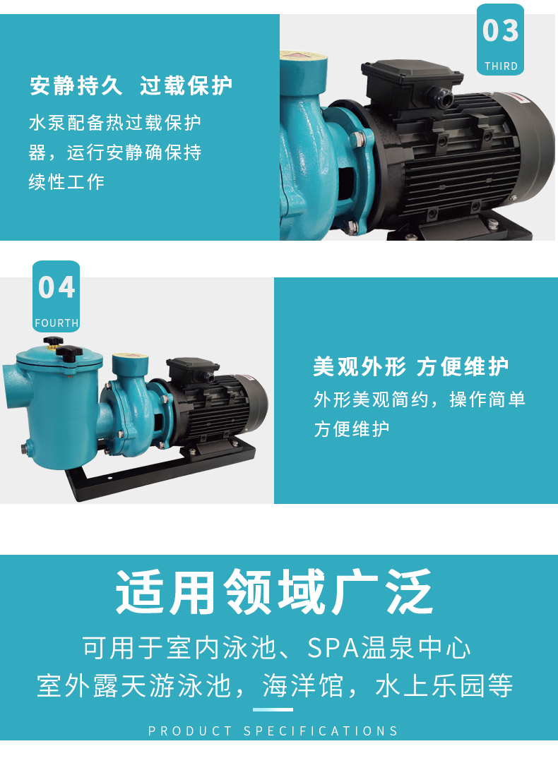 - 根據(jù)水力學(xué)原理設(shè)計的泵體,用金屬造成型,堅固的一體式結(jié)構(gòu),經(jīng)久耐用。濾籃容量大,大大減少了清洗工作。性能好,效率高,加快了注水(灌溉)速度并提高了能源效率。適用于各種泳池、工業(yè)用水、海洋館、水上樂園等。