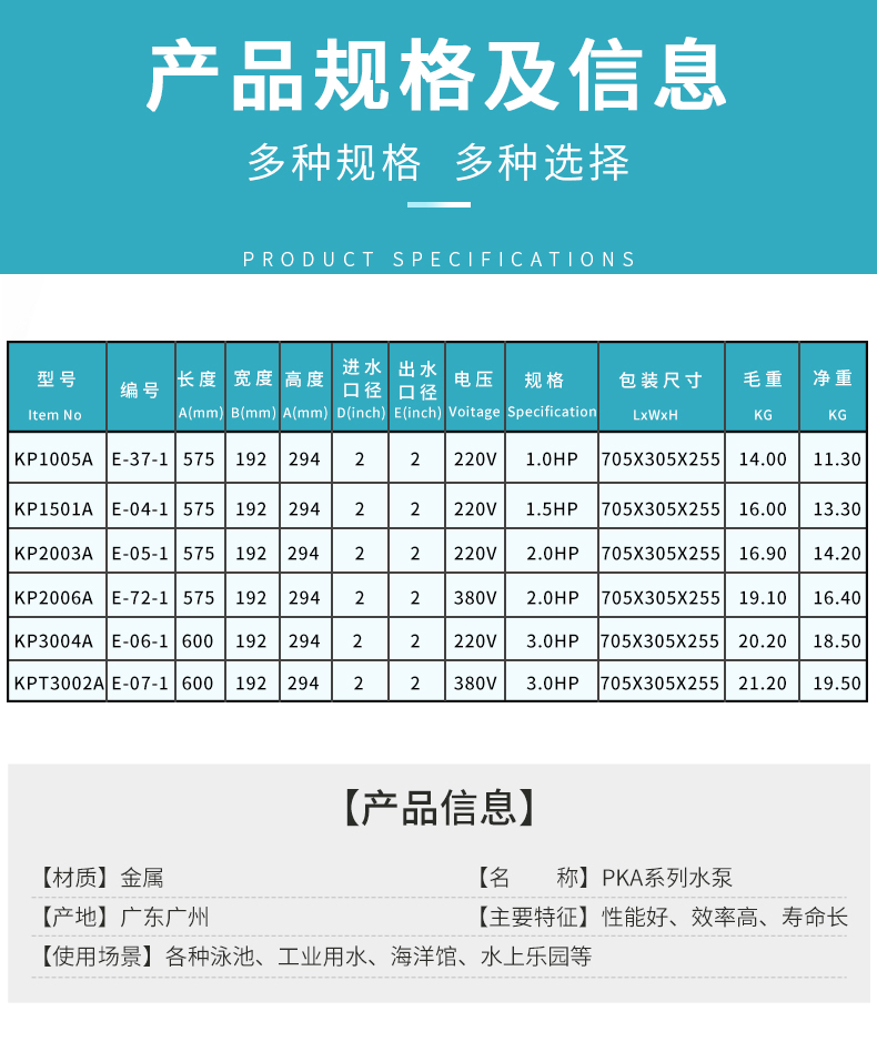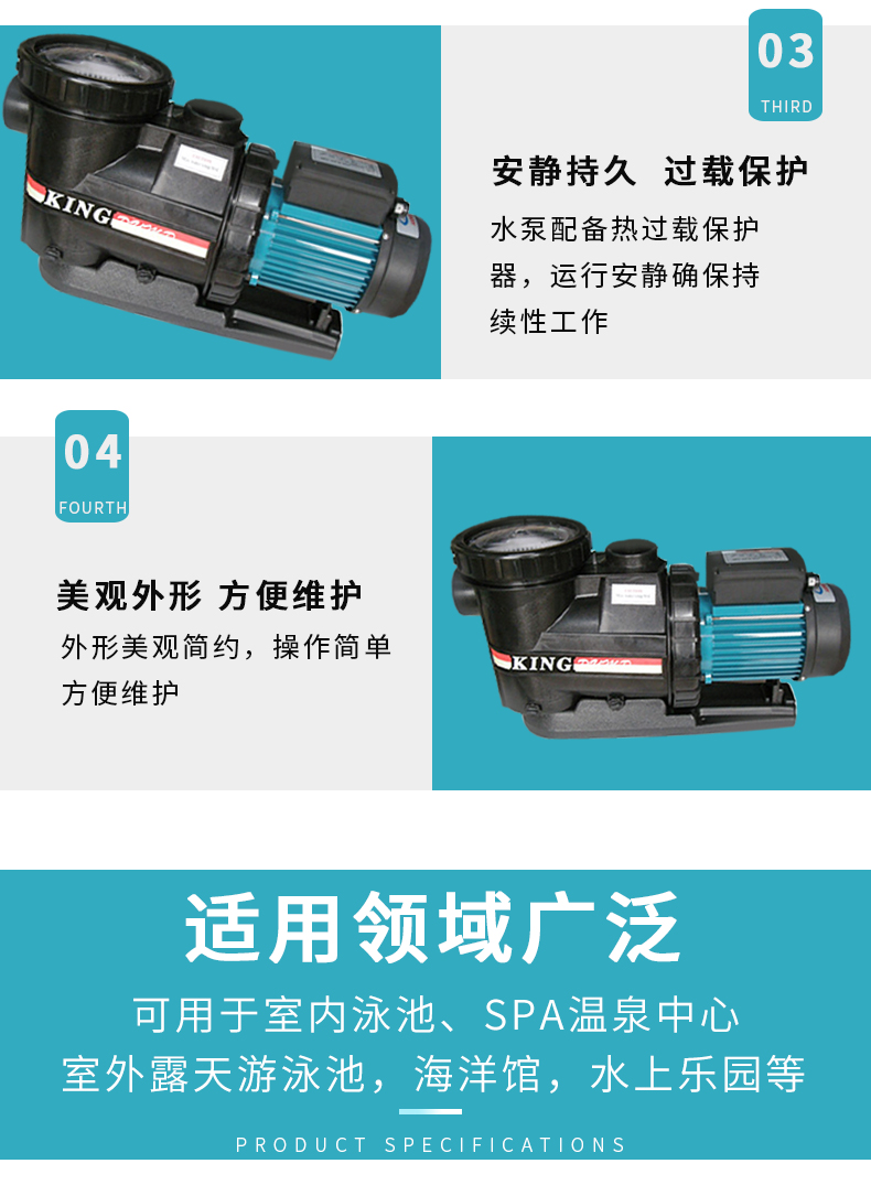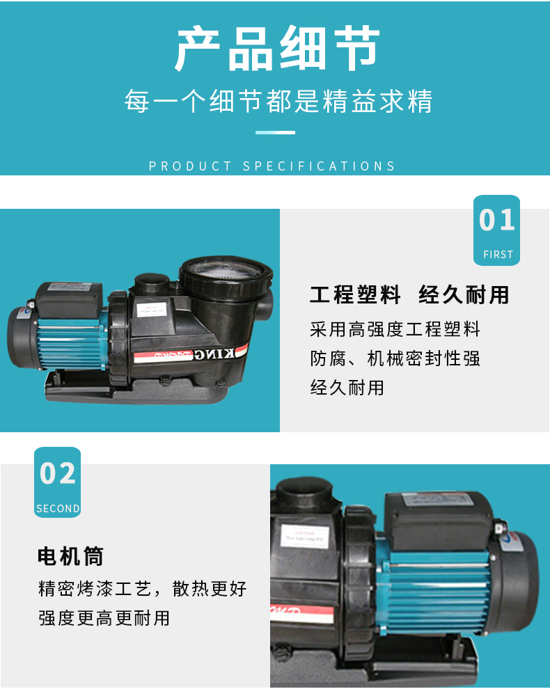 - 根據(jù)水力學(xué)原理設(shè)計(jì)的泵體,泵體、葉輪采用高強(qiáng)度工程塑料,經(jīng)久耐用。濾藍(lán)容量大,大大減少了清洗工作。性能好,效率高,加快了注水(灌溉)速度并提高了能源效率。適用于各種泳池、工業(yè)用水、海洋館、水上樂(lè)園等。